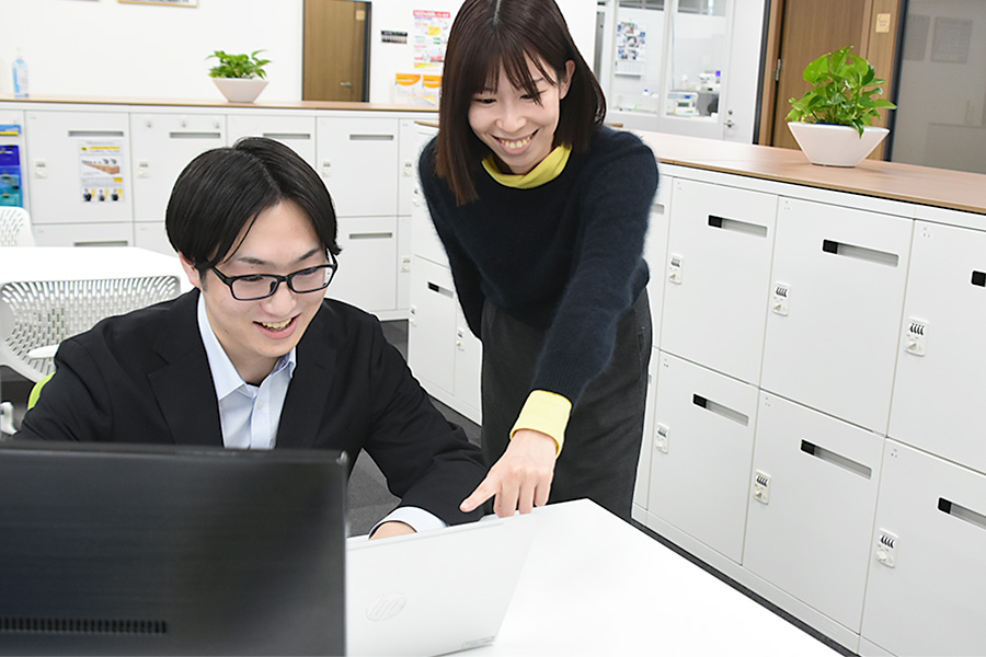 当社の新人教育期間は約6ヵ月間。この期間にじっくりと自身の適性や仕事のやりがい、各部内の働く環境や雰囲気を確かめ、この先の仕事について先輩社員と一緒に考えることができる仕組みになっています。配属後も2年目・3年目と研修を行い、キャリアアップに向けたサポートを続けていきます。